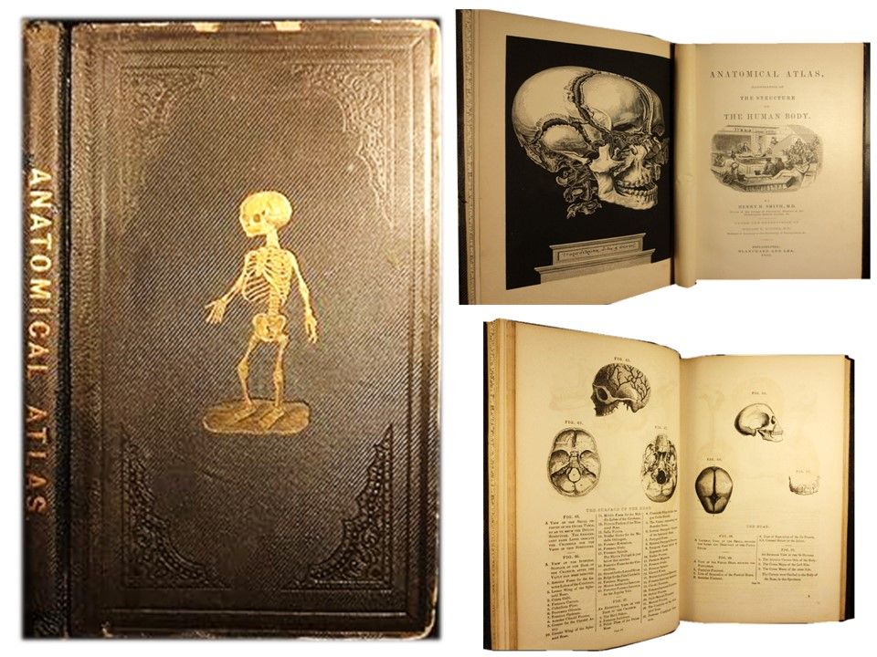 Atlas anatomique illustré de 1859 : Anatomie humaine, structure osseuse et tissulaire, chirurgie. Un ouvrage médical rare du milieu du XIXe siècle, signé Henry H. Smith. L'ouvrage comprend plus de 600 illustrations intégrées au texte, réparties en cinq parties : Os et ligaments; Systèmes dermoïde et musculaire; Organes de la digestion et de la reproduction; Organes de la respiration et de la circulation ; Système nerveux et sens.