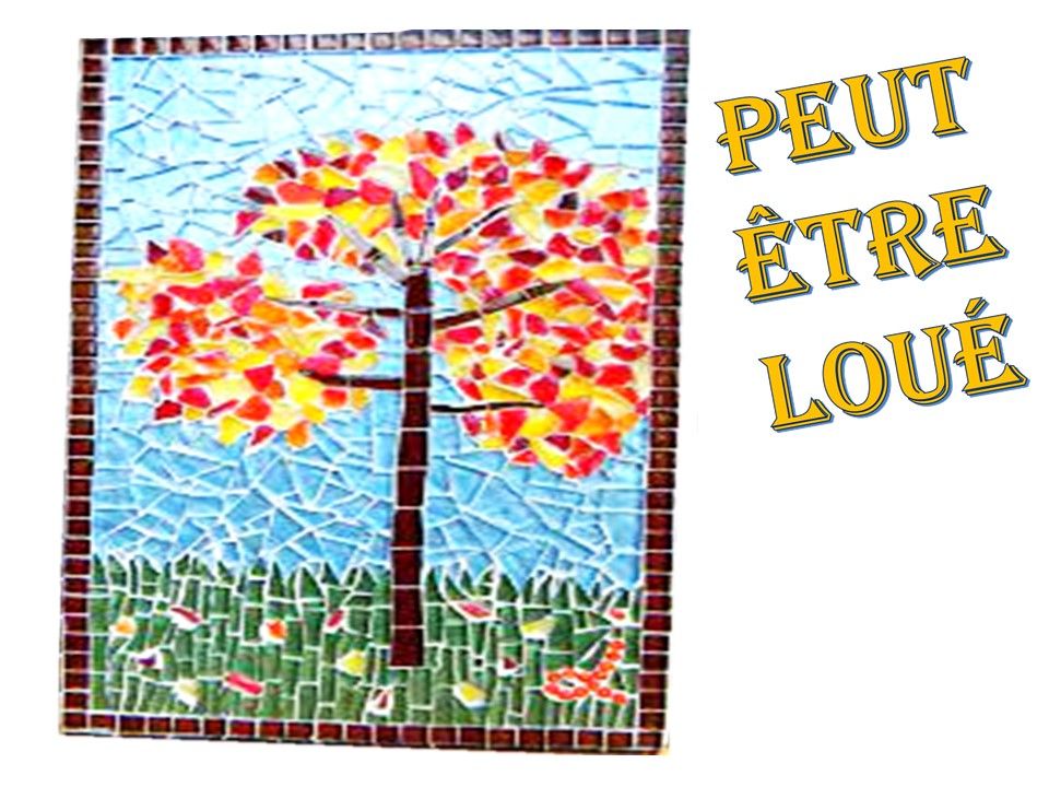 Tableau constitué de petits cubes "tesselles", de faïences colorées, découpés et assemblés à la main