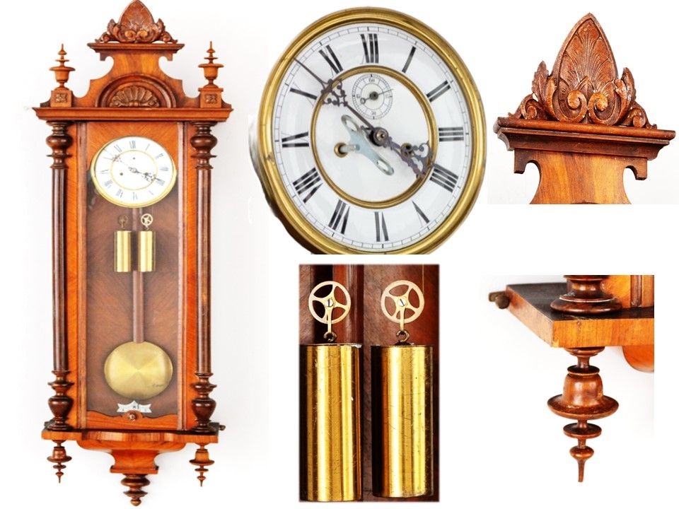 Horloge murale à placer dans une chambre ou salons, bois exotiques, ornées de bronze, marqueterie, incrustations et placages en bronze doré, datant du XIXe et du début du XXe siècle.